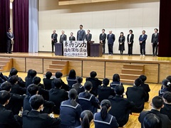 令和8年度 着任式・前期始業式 投稿日時 : 04/08 学校管理者 着任式・前期始業式を行いました。今年度は新たに12名の教職員が本校に着任し、生徒たちが温かく迎えました。続く始業式では校長が講話を行い、昨年度に引き続き「東高シンカ」をスローガンに活動を進める上で、本校生徒が目指す「シンカ」を「小さな積み重ねによる自己更新」と再定義しました。高校生という限られた時間の中でできることに全力で取り組むよう、生徒たちへ力強く語りかけました。新年度のスタートにふさわしい、凛とした雰囲気の式典となりました。 Tweet {{options.likeCount}} {{options.likeCount}}
