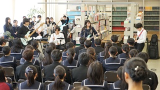 図書局主催「文化部万博」開催中 投稿日時 : 04/16 学校管理者 本校図書局が企画・運営する新入生歓迎イベント「文化部万博」が、現在図書館を会場に開催されています。4月9日から28日までの期間中、文化系部活動による活動紹介や作品展示、体験コーナー、ライブ・コンサートなど、多彩な企画が行われています。16日(木)にはフォークソング部によるライブが実施され、80名を超える生徒が来場し、大いに盛り上がりました。新入生にとっては、先輩たちの活動を知り、学校生活の楽しさを実感できる貴重な機会となっています。 Tweet {{options.likeCount}} {{options.likeCount}}