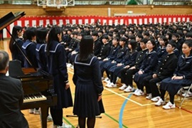 第79回入学式 投稿日時 : 04/08 学校管理者 第79回入学式を挙行しました。320名の新入生が本校への入学を迎えました。校長式辞では「大きな夢を持つこと」「常に学ぶ意識を持つこと」「自ら進んでさまざまな経験を積むこと」の3つを大切にするよう、新入生へ温かくも力強いメッセージが贈られました。入学式後のホームルームでは、緊張した面持ちだった生徒たちも、少しずつ笑顔を見せ始め、新たな高校生活への第一歩を踏み出しました。 Tweet {{options.likeCount}} {{options.likeCount}}