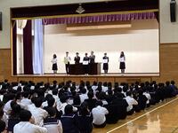 はじめに、各種大会で有数な成績を収めた放送局、文芸部、体操部などの生徒に対し、賞状伝達が行われ、仲間の活躍に大きな拍手が送られました。