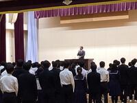 校長講話では、平和の尊さと命の大切さについてのお話があり、また受験を控える3年生へ向け力強い激励の言葉が送られました。