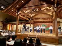 見学旅行最終日となる5日目(10月18日)は、午前中に大槻能楽堂にて、日本の伝統芸能である能と狂言の鑑賞と能体験を行いました。代表生徒は本物の檜舞台で能楽に触れる貴重な経験をしました。午後からは、2団に分かれ伊丹空港・関西空港から新千歳空港へ向け、順次帰路につきました。