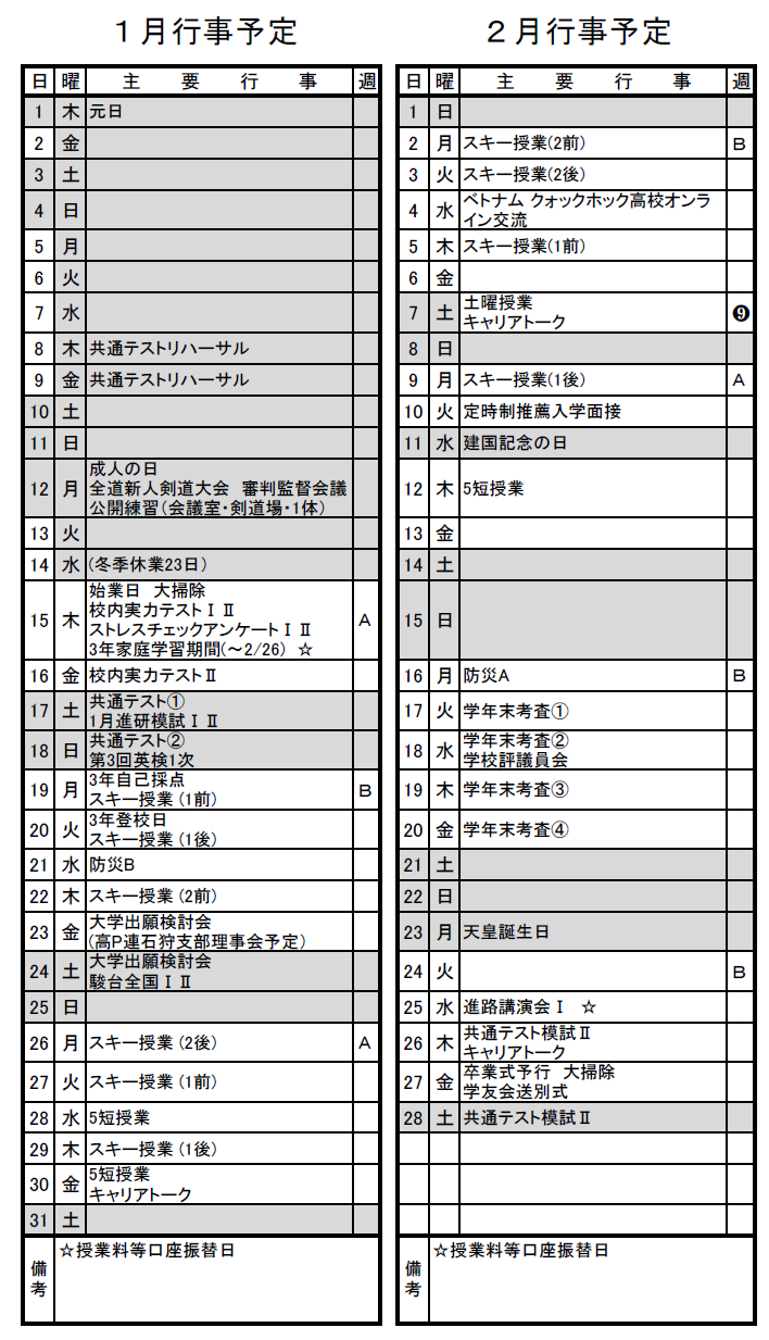 本校HPでお知らせします。